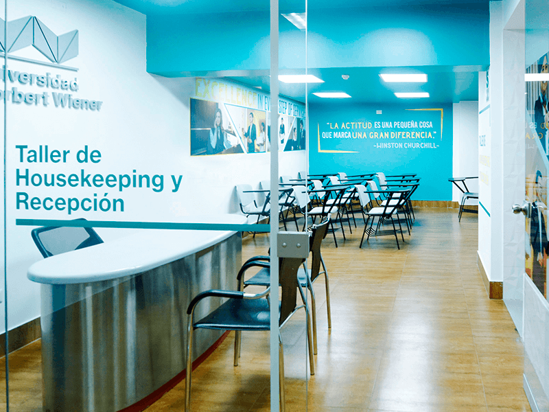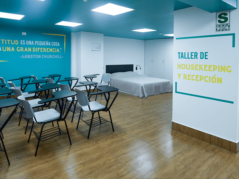 Estudia en ambientes totalmente equipados como nuestra sala gastronómica, taller de housekeeping, salas de cómputo y muchos más recursos que potenciarán tu formación universitaria.